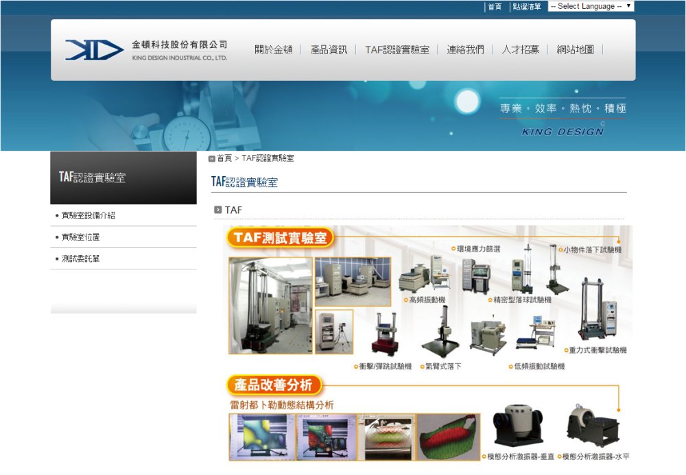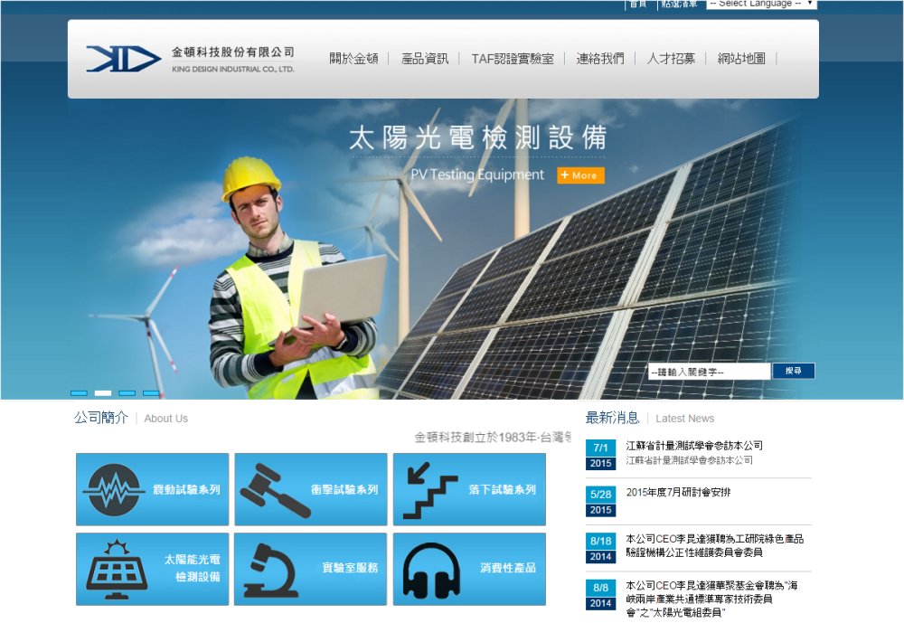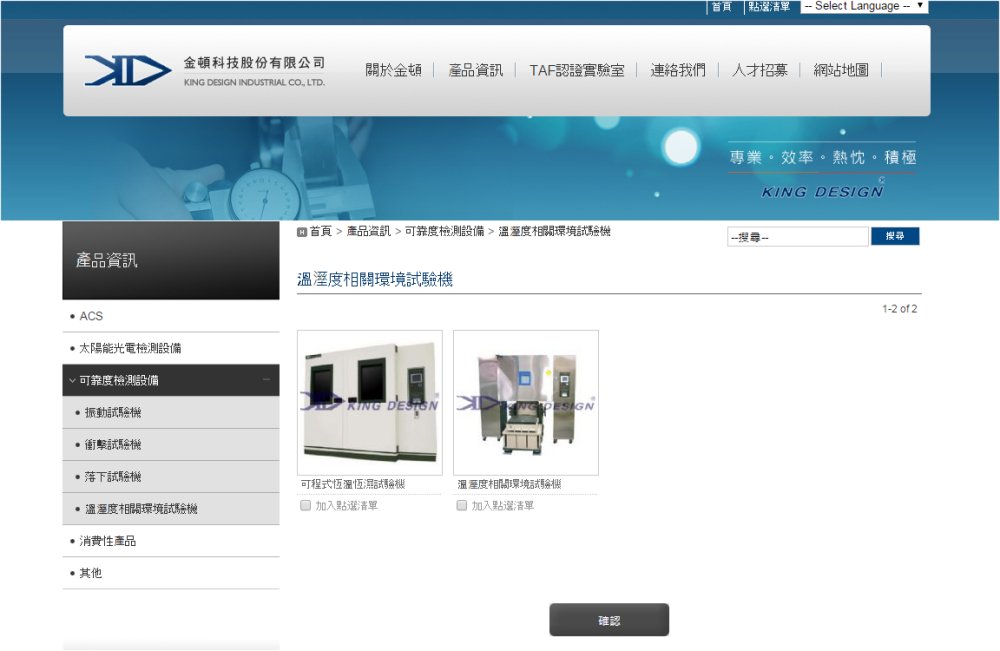 | 事業内容 | 金頓科技公司 成立於西元1983年,初期以生産通信檢測儀器為主,市場遍及台灣及東南亞地區,是各大電話與傳真機製造廠必備的重要品管設備。隨著客戸需求揄チ與業務擴展,金頓科技公司積極投入可靠度相關的産業領域,三十多年來專精於振動、衝撃、落下、環境試驗、噪音防制等測試儀器之研發和製造,近年來更朝向太陽光電檢測設備相關領域發展,以卓越的技術與服務,深獲國内外許多標竿企業的信ョ與支持。 |